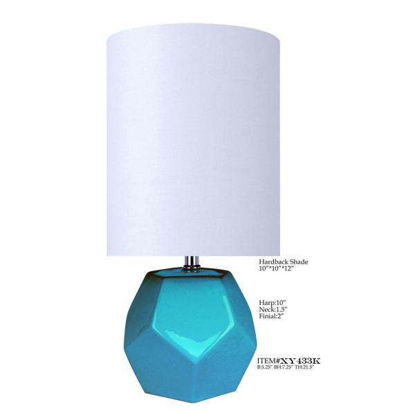 Blue ceramic table lamp with tall shade multi sides bases for rooms